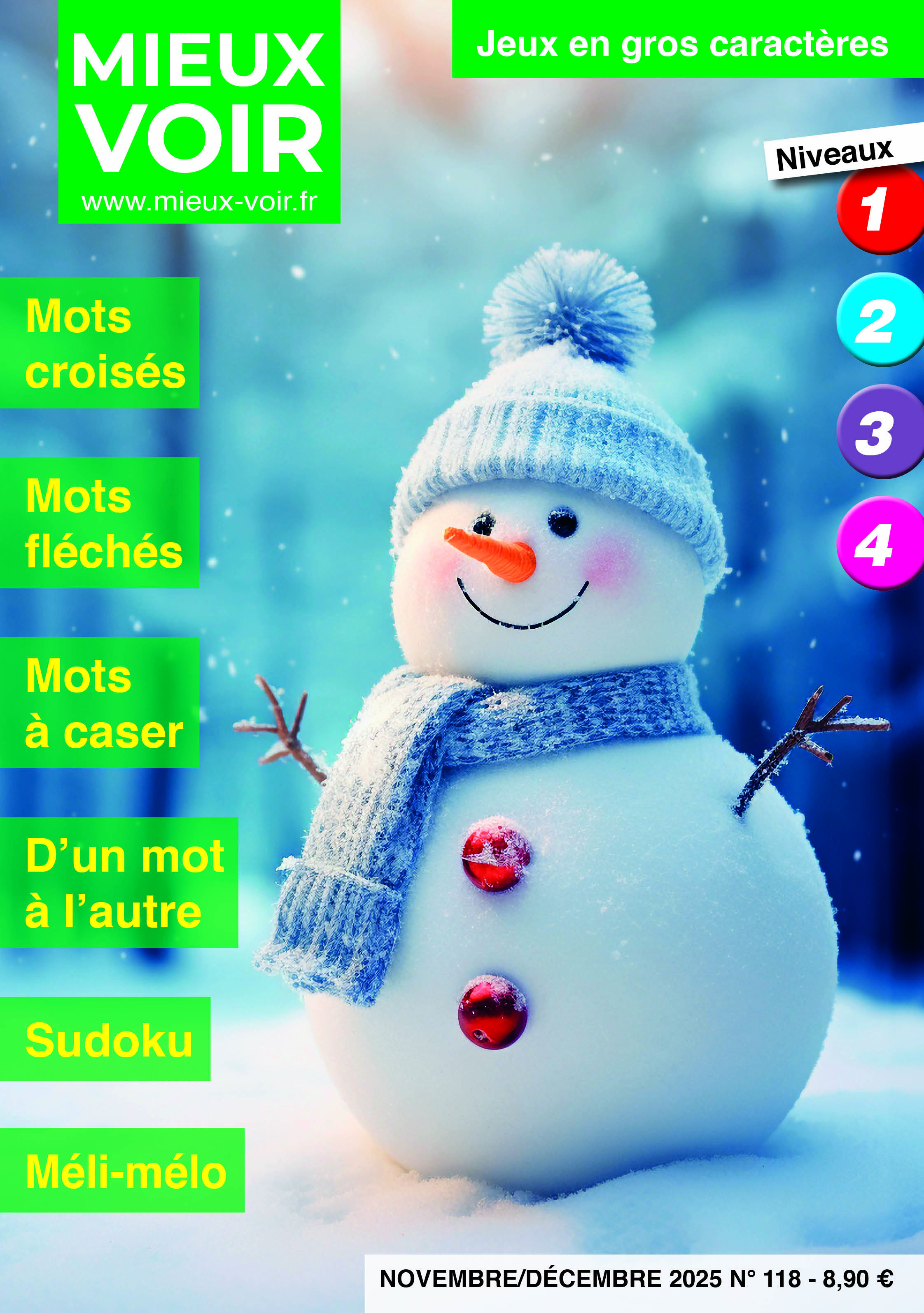 Nous proposons également des magazines d’actualités ainsi qu’un magazine de jeux en gros caractères, incluant mots croisés, fléchés, sudokus et méli-mélos. Conçu pour le confort visuel et l’autonomie des personnes malvoyantes, il allie clarté, accessibilité et qualité éditoriale.