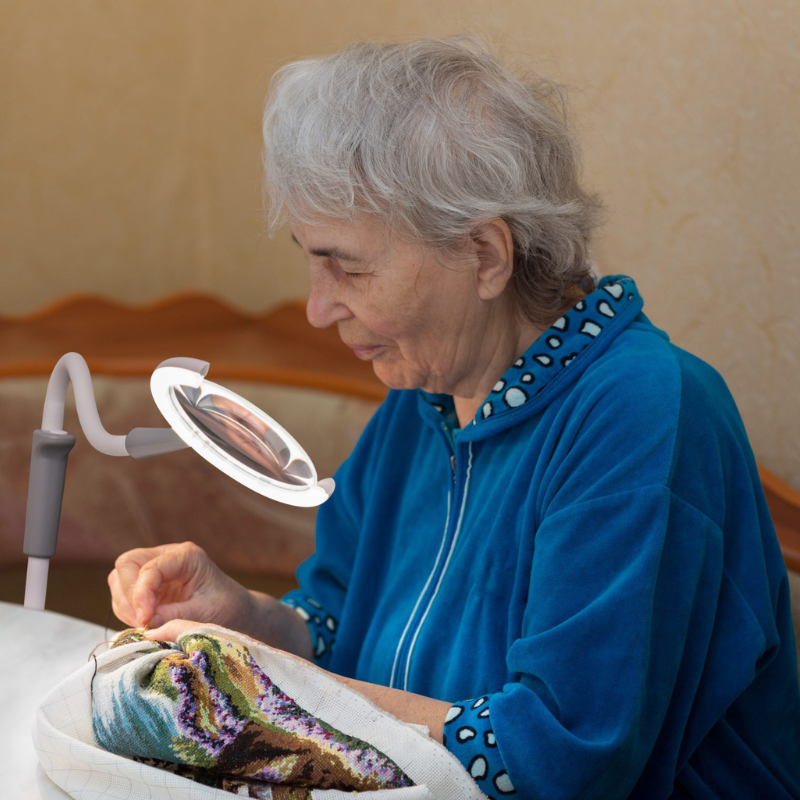 La lampe Magnificent Pro est une lampe polyvalente 3 en 1. Vous pouvez aussi bien l'utiliser en tant que lampe de bureau que comme lampe de salon, ou encore en tant que lampe de travail. Elle est donc idéale pour la lecture, l'écriture, mais aussi pour des petits travaux manuels qui nécessitent de la précision. En plus de son éclairage réglable adapté à la basse vision, sa grande loupe intégrée vous permet de voir chaque détail précisément et vous apporte un confort de lecture idéal.