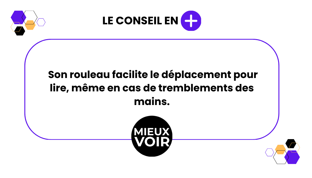 La loupe électronique Traveller HD est conçue pour les personnes atteintes de basse vision (DMLA, glaucome). Grâce à son grossissement de 2 à 30 fois, la lecture du journal ou des petits caractères est plus confortable et plus aisée. Elle vous suit partout au quotidien grâce à son faible encombrement et son poids léger. Son mécanisme de lecture unique à coulissement rend la lecture plus naturelle, idéal pour les personnes ayant des difficultés à tenir l'appareil d'une main ferme.