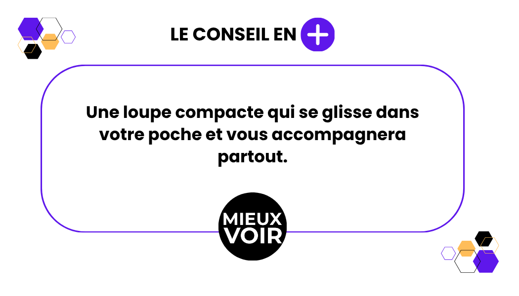 Découvrez la loupe électronique MV3, abordable et très pratique pour les personnes atteintes de basse vision ! Étiquettes de prix, livres, petits documents...elle vous permet de faire ressortir le texte pour plus de confort visuel ! Grâce à ses dimensions de 12,8cm x 7,8cm x 3,4cm et son écran de 3.5 pouces, elle se glisse aisément dans un sac ou dans une poche. Elle dispose d'un petit support repliable afin de la poser sur un livre ou un document. Cette loupe électronique offre un grossissement de 2x à 25x optimal pour lire, écrire et accomplir vos tâches quotidiennes. Ses réglages de contraste garantissent un confort visuel personnalisé en fonction de vos besoins. Choisissez une solution abordable et ergonomique pour préserver votre autonomie au quotidien !
