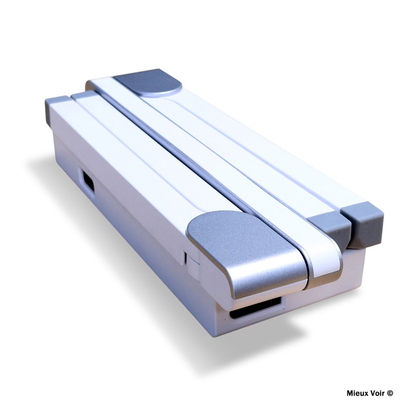 La loupe électronique Clover 10 de la marque Sightcare est destinée aux personnes malvoyantes, ainsi qu’aux seniors, permettant un grossissement jusqu'à 20 fois. Elle permet de concilier la mobilité d’une loupe électronique ultra performante et la puissance d’un téléagrandisseur. Ses deux caméras et son écran haute résolution permettent une excellente netteté et une fidèle restitution des couleurs pour améliorer le confort de lecture. Enfin, son support de lecture permet une utilisation mains libres simplifiée et pratique.