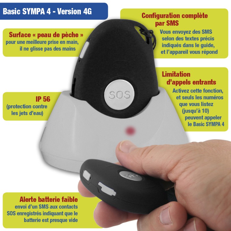 Le téléphone portable simplifié Basic Sympa 4 est parfaitement adapté pour les personnes malvoyantes. C'est un téléphone mobile GPS très simple et facile d'utilisation. Il dispose de haut-parleur à réponse automatique et d'une touche SOS. Ce modèle offre de nombreux atouts pour une utilisation extrêmement simplifiée, permettant de rester en contact et en sécurité. Il propose des options telles que : un contact SOS, alerte batterie faible par SMS, réponse automatique, haut-parleur automatique, détection de chute, filtrage des appels entrants et position GPS.